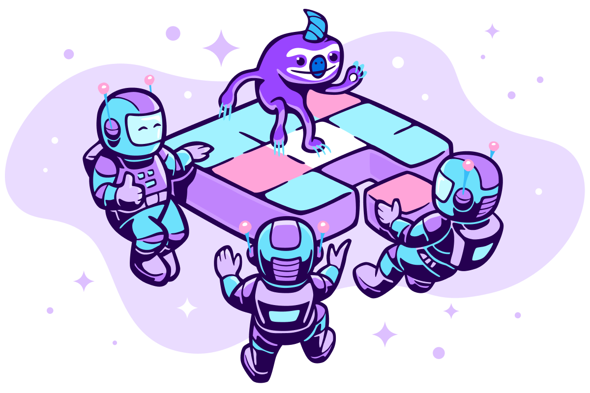 Parking included. Hence the space theme, gamification, and our mascot Nebby the Slothicorn. He’s the best.